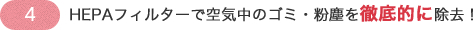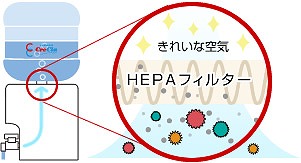 使うたびにボトル内にボコボコッと入る空気も、HEPAフィルターを通しているのでとっても安心。HEPAフィルターは空気中のゴミ・粉塵を徹底的に除去できます。